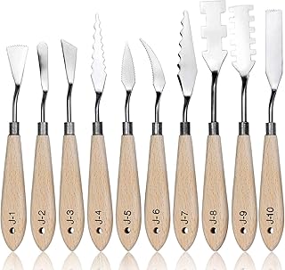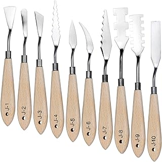 DESON 10 pcs Acier Inoxydable Palette Couteau, Ensemble Palette Couteau Peinture, Peinture à l'huile Couteau, Manche en Bois