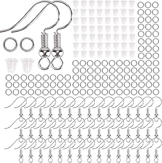 AIEX 300 Pièces Crochets de Boucle d'Oreille Plaqués Argent Crochets de Fil d'Oreille Hypoallergénique Avec Dos de Sécurité Pour Boucle d'Oreille Transparente Et Anneaux de Saut