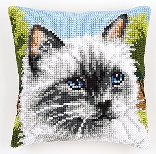 Vervaco Kit coussin au point de croix Chat Siamois,Multicolore,40.0 x 40.0 x 0.3 cm