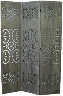 PEGANE Paravent en Bois Gris avec Sculpture sur Bois de 3 pans