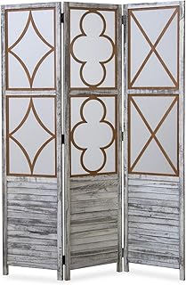 Homestyle4u 1859 Paravent 3 pièces en bois style vintage Blanc/gris