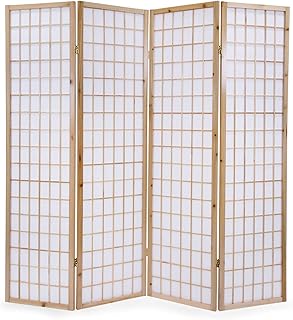 Homestyle4u 4 pan diviseur de pièce écran Pliant - Bois diviseur Shoji en Papier de Riz Blanc Naturel