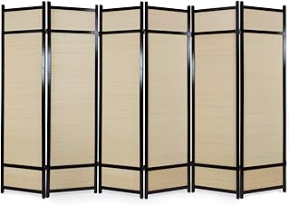 Homestyle4u 6 pan diviseur de pièce écran Pliant - diviseur de Shoji Bois avec du Bambou en Noir