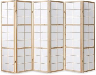 Homestyle4u 6 pan diviseur de pièce écran Pliant - Bois diviseur Shoji en Papier de Riz Blanc Naturel