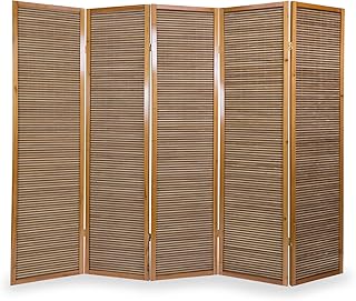 Homestyle4u 5 pan diviseur de pièce écran Pliant - diviseur de Shoji Bois avec du Bambou en Brun Clair