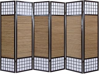 Homestyle4u 6 pan diviseur de pièce écran Pliant - diviseur de Shoji Bois avec du Bambou dans Le Riz Brun Blanc