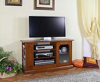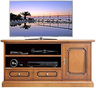 Arteferretto Meuble Support TV en Bois avec Porte et rayonnage latéral, très Solide et Fonctionnel, création Artisanale Italienne Unique de Style Classique