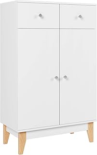 Homfa Meuble Salle de Bain Colonne de Rangement à 2 tiroirs avec Deux Portes Étagères Réglables Bois Blanc 75x37x120cm