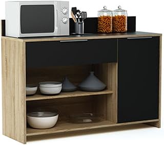 PEGANE Meuble desserte en Bois 1 Porte, 1 tiroir et 2 niches, L123 x H85 x P40 cm