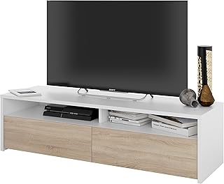 Meuble TV Lowboard Meuble TV Table TV avec étagères de Rangement Tableau TV avec 1 Portes et 2 étagères Meuble TV Bois Blanc pour Le Bureau de Salon de ménage