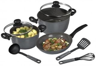 STONELINE 13499 Batterie de Cuisine Comprenant 1 poêle 20 cm, 1 marmite 20 cm, 1 marmite 24 cm à revêtement Anti-adhésif Haute qualité et 2 couvercles en Verre 8 pièces