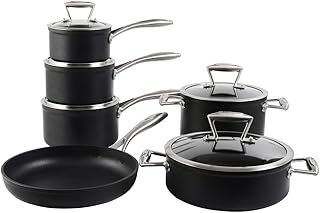 ProCook Professional Anodised - Batterie de Cuisine Antiadhésive Compatible Induction - 6 Pièces - Casseroles Poêle Faitout Marmite - Couvercles Verre Trempé - Manches & Poignées Inox Isolants