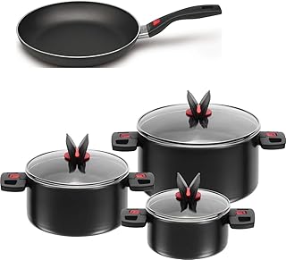 BALLARINI Click & Cook Batterie de cuisine 4 pièces – Set de 3 casseroles + poêle 28 cm