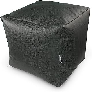 CLP Pouf Repose-Pied Melbourne Similicuir I Tabouret en Similicuir Pouf Cubique avec Assise Rembourrée I Repose-Pied carré, Couleurs:Noir