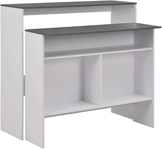 vidaXL Table de Bar avec 2 Dessus de Table Mobilier de Pub Table de Salle à Manger Table Haute Meuble de Cuisine Intérieure Maison Blanc et Gris