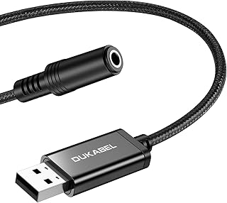 DuKabel USB Carte Son Externe USB vers Jack 3,5 mm (4 pôles CTIA) câble Adaptateur Audio stéréo Carte Son Externe pour Casque, Haut-Parleur ou Microphone TRRS 4 pôles - Noir