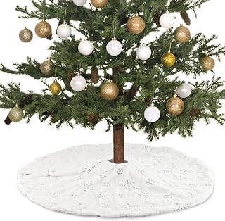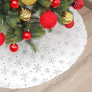Domybest Jupe de Sapin de Noël en Peluche Motif Flocon de Neige Jupe Arbre de Noël Couvre-Pied de Sapin de Noël Cache Pied Sapin de Noël Décoration de Noël