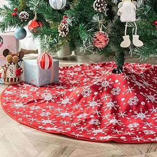 Deggodech 90cm Jupe de Sapin de Rouge Jupe Arbre de Noël avec Motif Flocon de Neige Blanc Tapis de Sapin de Noel Couvre-Pied de Sapin pour Fête de Noël Décoration d'arbre de Noël - 35inches