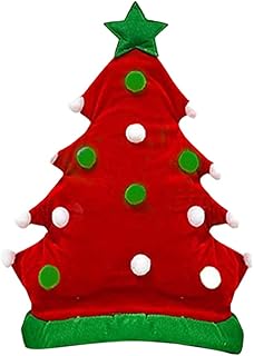 Wupettier Chapeau De Sapin De Noël en Peluche Chapeau De Père Noël en Peluche Arbre De Noël Chapeau De Boule Décoration Amusant Chapeau De Fête pour Adultes Noël (Rouge)