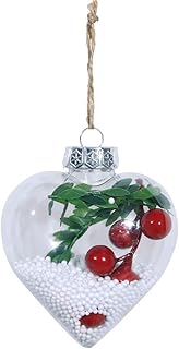 VOSAREA Suspension Noel Coeur Noël Transparente Boule Noel avec Baie de Noel et Flocon de Neige Decoration Arbre Noel Suspendu Creation pour Noel