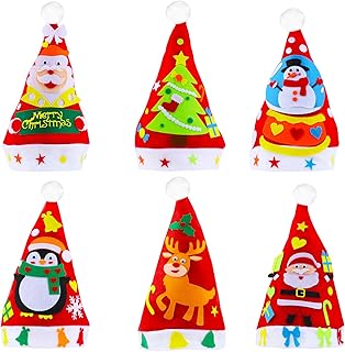 HOWAF 6pcs Chapeaux de Noël pour Enfants Artisanat Activités de Noël, Bricolage Noël Fête Chapeau en Feutre pour Costumes Déguisements de Noël, Sapin de Noël Bonhomme de Neige Père Noël Pingouin Renne