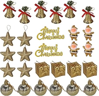 Tinksky Deco Sapin de Noel 28 Pieces Merry Christmas Étoiles Boules de Noël Cloches de Noël Père Noël Suspension Noel Rouge