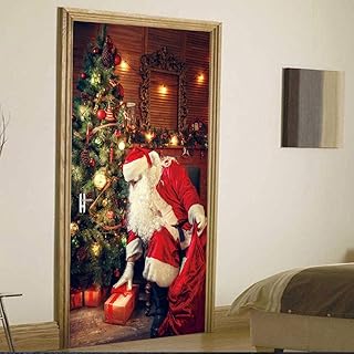 BXZGDJY Autocollants De Porte 3D Santa 77X200Cm Sticker Porte Trompe L'Oeil Effect 3D Pour Décoration Mur, Autocollants Muraux En Vinyle Auto-Adhésifs