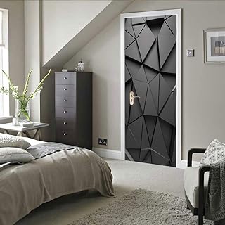 TMANQ 3D Wall Sticker Autocollant Art Decor Vinyle Mural Amovible Poster Trompe L'Oeil Mural 77X200CM Art Géométrique Noir - Décoration Pour Porte Cuisine, Salon, Chambre, Salle De Bain