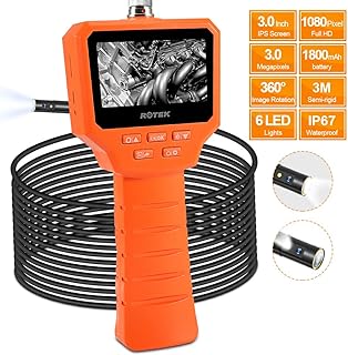 Rotek Double Lentille Endoscope Industriel, 3 Pouces Endoscope 3 Megapixels 1080P HD LCD IPS Numérique Camera Endoscopique 8mm Semi-Rigide du Tube IP67 Etanche 6 Lumières LED Caméra D'inspection - 5M