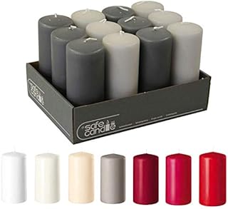Lot de 12 bougies piliers classiques et sobres - Bougies de l'Avent / bougies de Noël (mélange de gris, grand : hauteur 15 cm / diamètre 6 cm