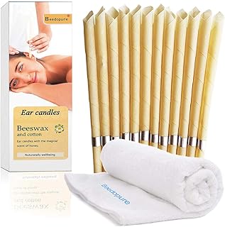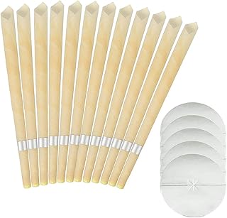 Bougies d'oreille,Bougies auriculaires, cônes de bougies en cire d'abeille - Dissolvant à la cire d'oreille - Standard pour thérapeute naturel bio avec serviette de qualité (12 pcs blanc)