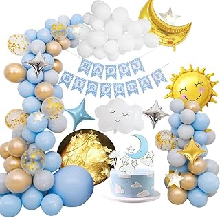 MMTX Décorations de fête d'anniversaire Garçons Filles, Ballons de fête thème ciel décoration avec bannière de joyeux anniversaire, ballon de feuille de nuages de, pour la première fête d'anniversaire